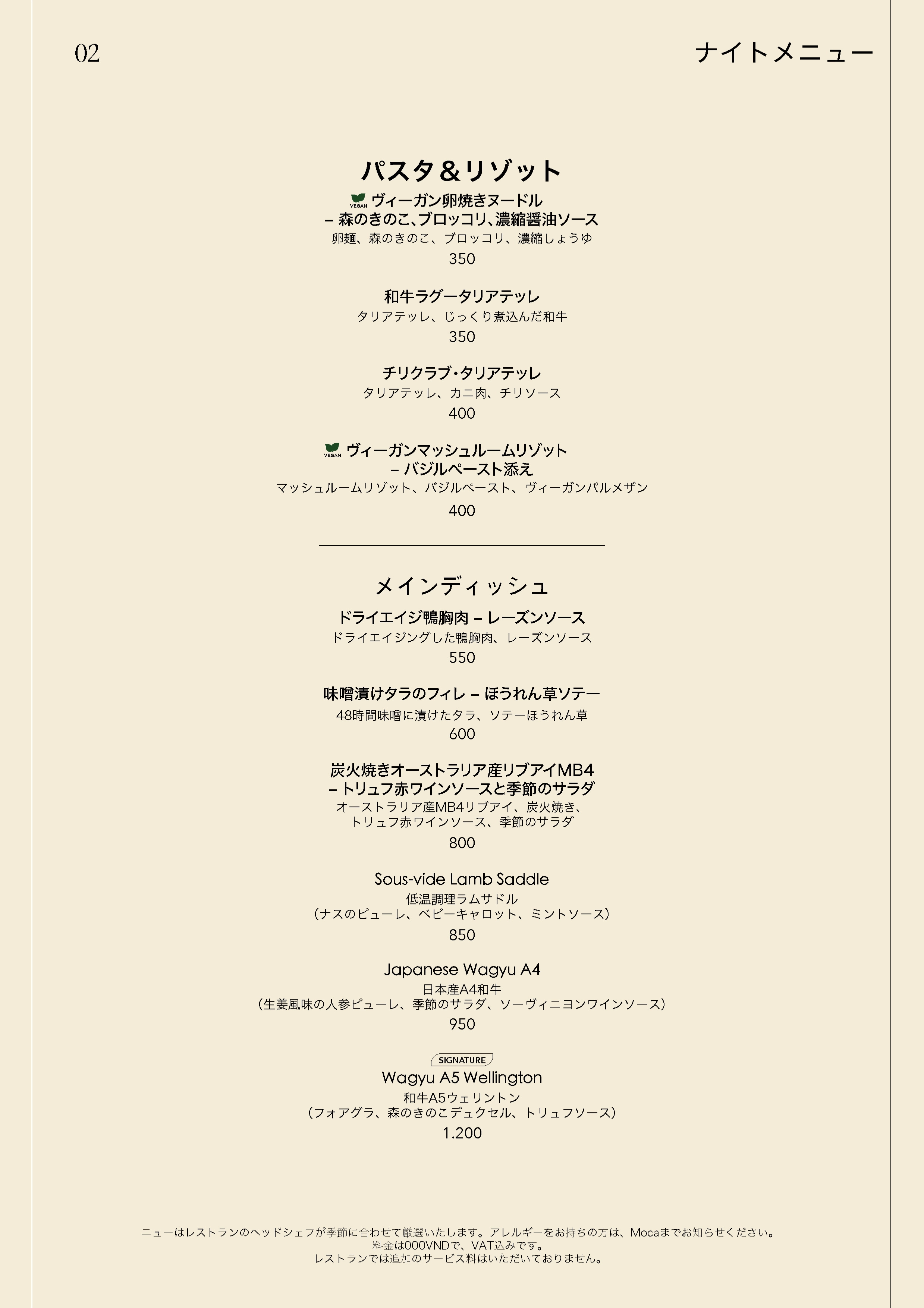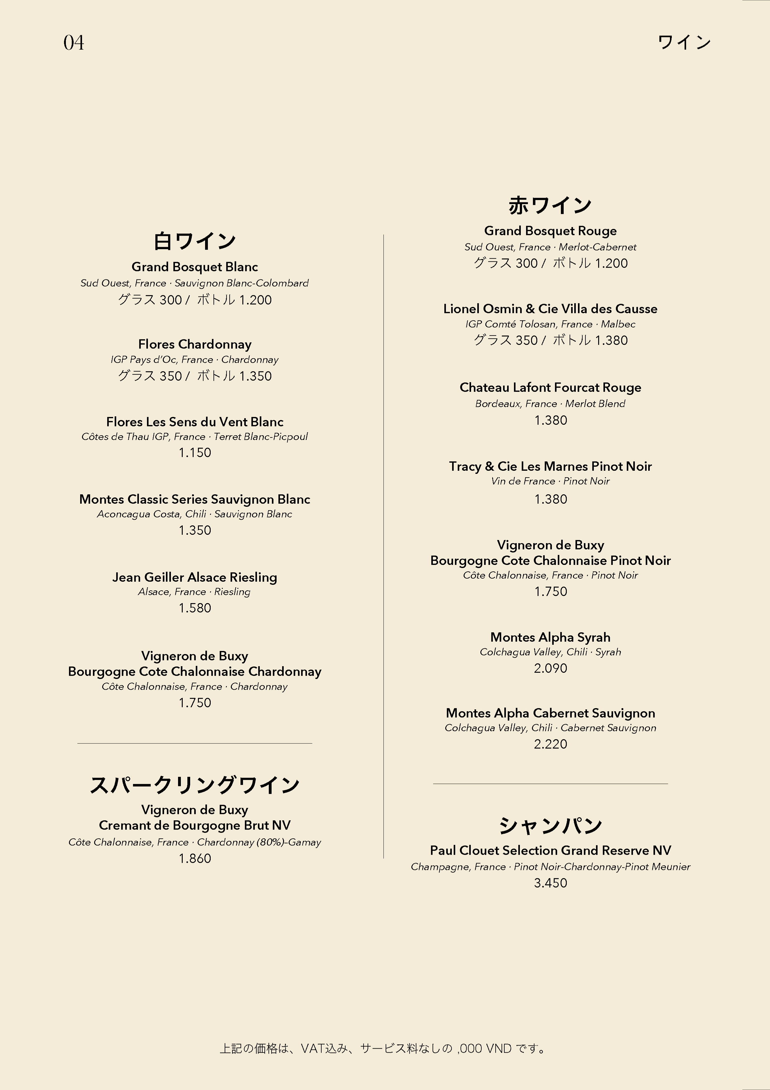 本日より、ランチタイムはパンのみの提供となり、サービス料理はございません。