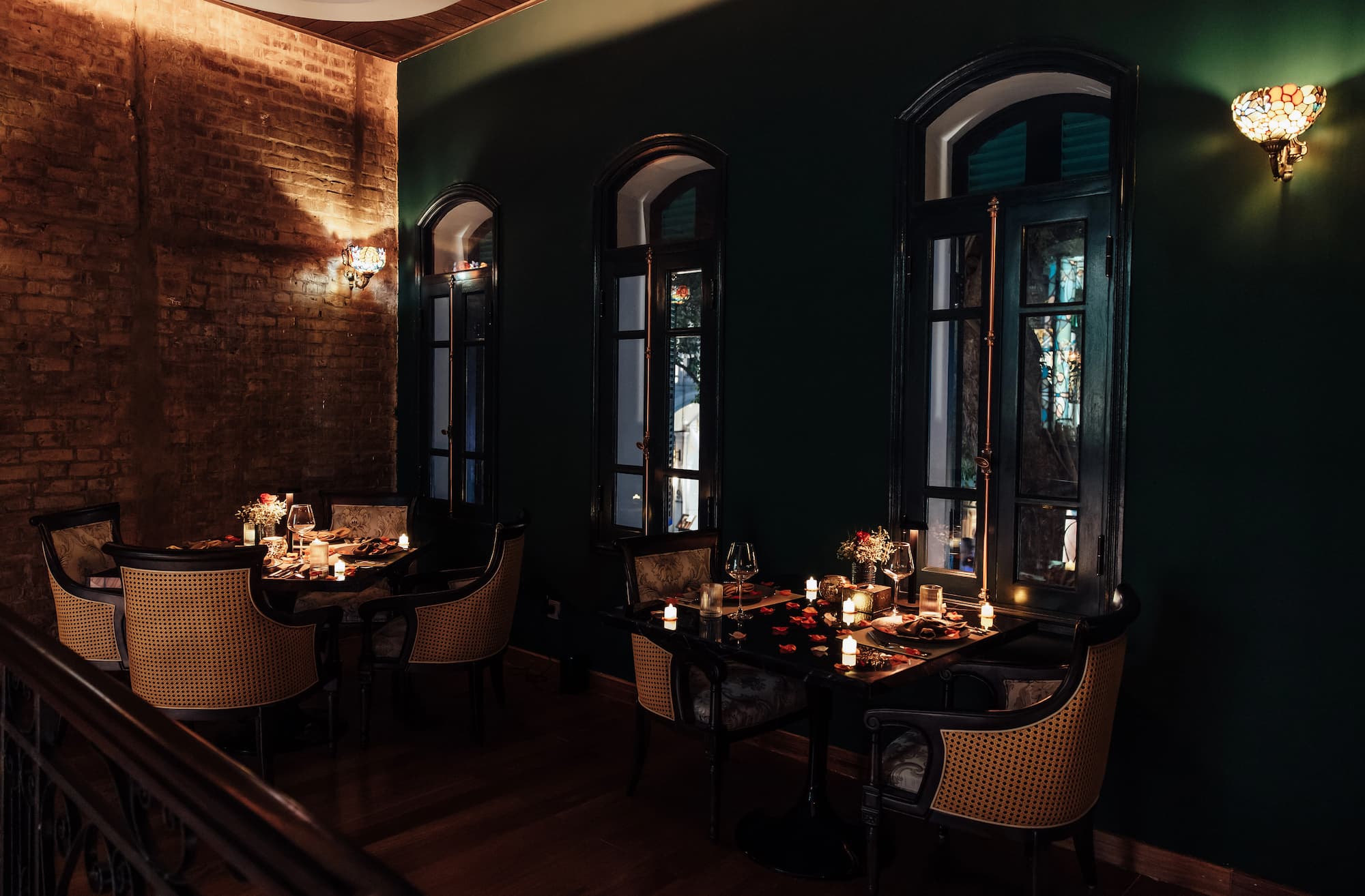 Our luxurious and modern architectural space, infused with the nostalgic essence of old Hanoi, provides a tranquil escape in every corner. or the entrance lounge with its enigmatic dead-end staircase, or the superb emerald bar illuminated by shiny spheres.