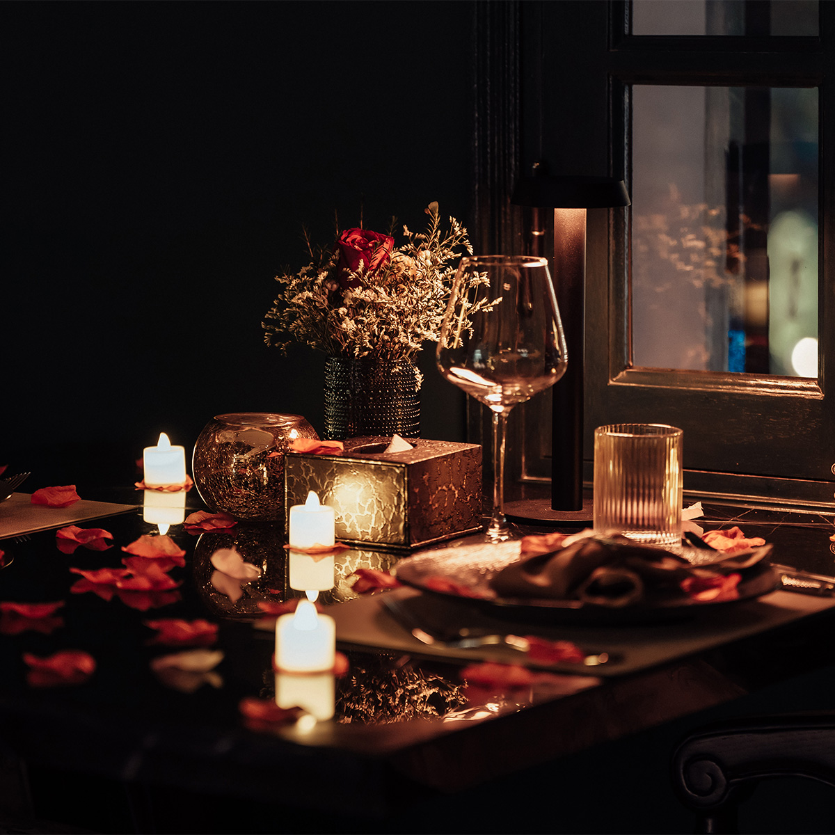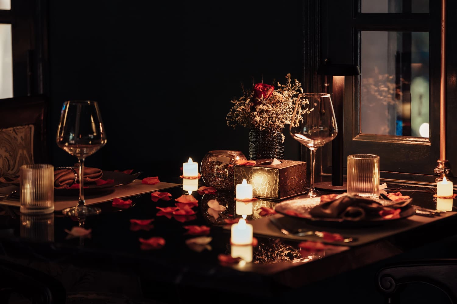 저녁이 되면 레스토랑은 세심하게 완성된 디테일로 가득한 로맨틱한 디너 공간으로 변신합니다.