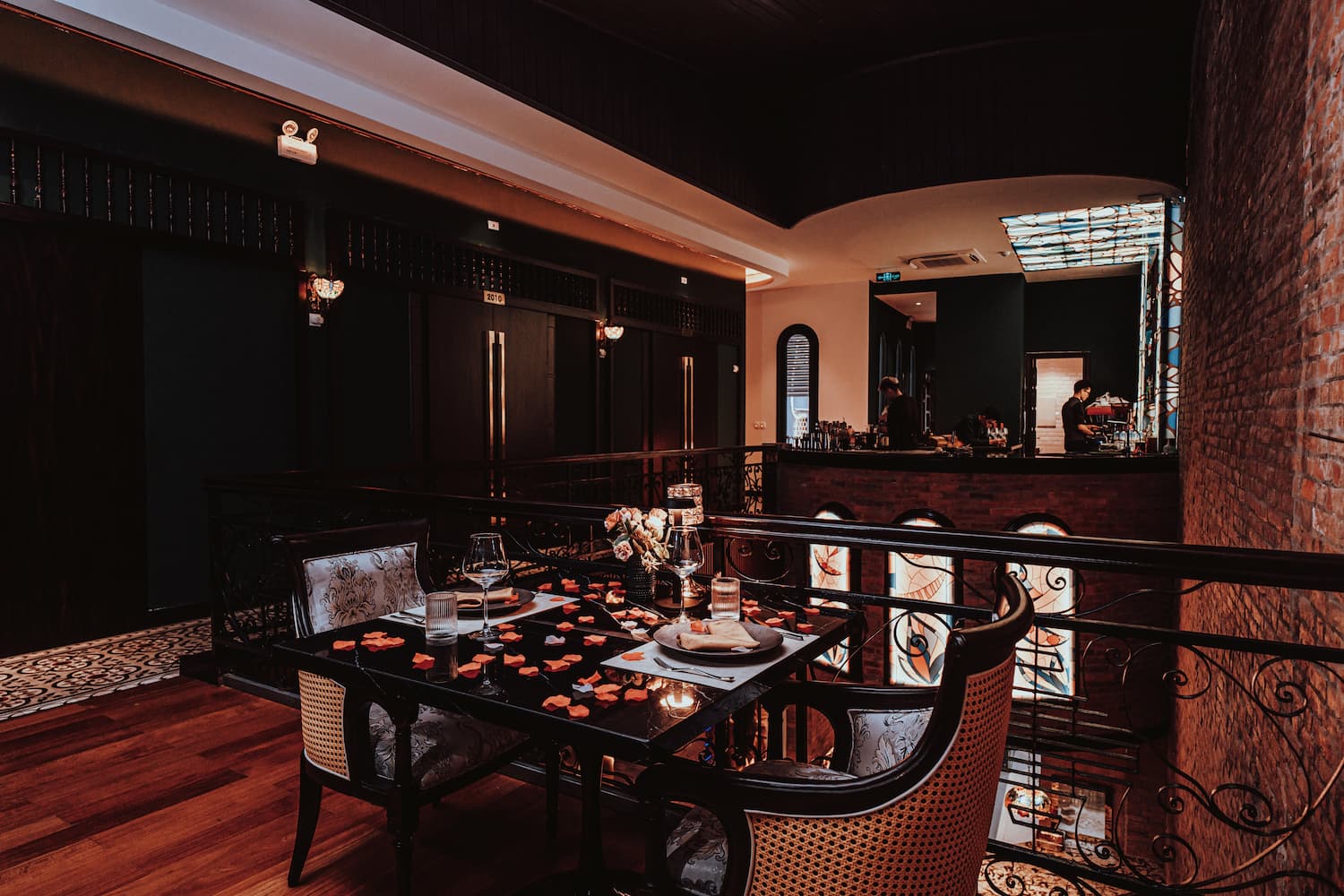 Our luxurious and modern architectural space, infused with the nostalgic essence of old Hanoi, provides a tranquil escape in every corner. or the entrance lounge with its enigmatic dead-end staircase, or the superb emerald bar illuminated by shiny spheres.